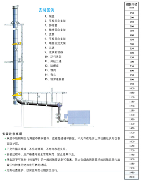 煙囪每個(gè)部件的內(nèi)、外筒及隔熱材料出廠前組裝為一體,現(xiàn)場安裝時(shí),只需擰緊螺釘即可,無須現(xiàn)場焊接、鉚接,使安裝方便、快捷。